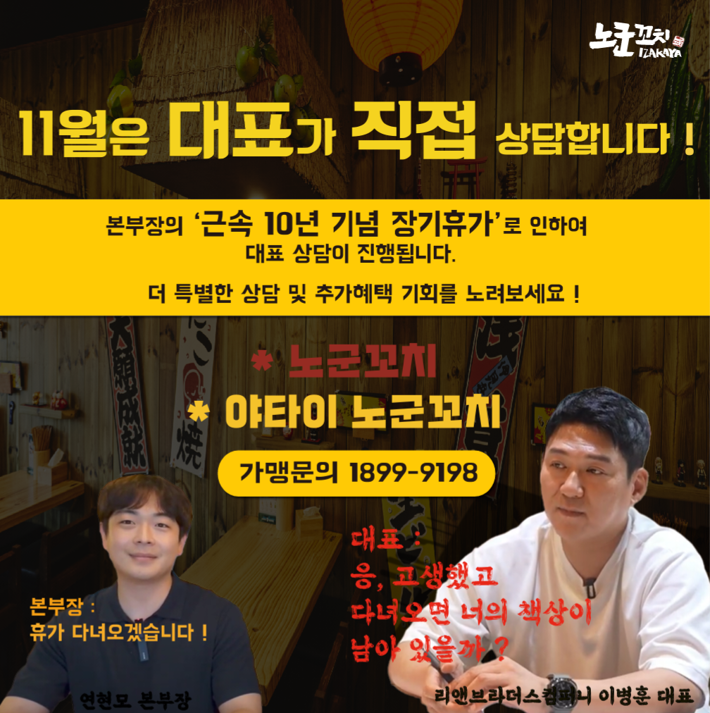 다른 프랜차이즈에서는 낼 수 없는 노군꼬치만의 특별한 인테리어!
